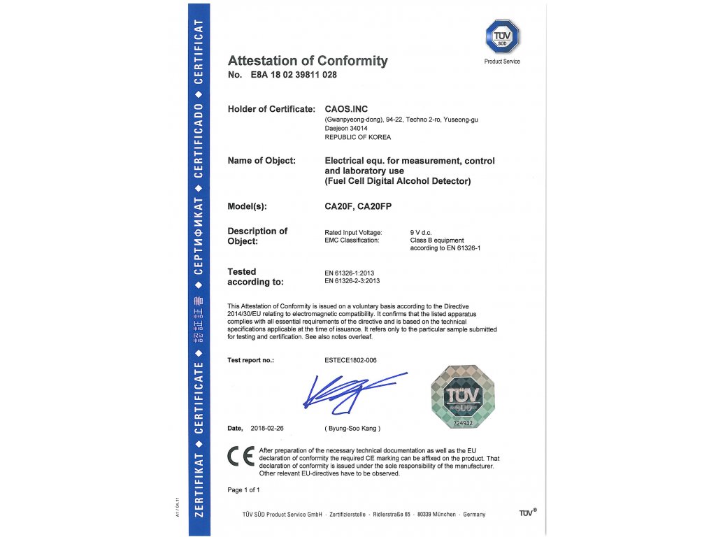 Řada alkohol testerů CAOS CAxx zajímá své místo především v kategorii osobních testerů. CA20F se však odlišuje zejména možností vyššího počtu měření. Neobsahuje doplňkové funkce, jako je paměť nebo třeba možnost pasivního měření, čímž si zajišťuje velmi příznivou cenu. Senzor je přitom velmi přesný a přístroj zobrazuje výsledky měření se třemi desetinnými místy. Displej je podsvícený s velkými znaky, díky čemu je dobře a rychle čitelný za jakýchkoliv okolních podmínek. Přístroj ovládáte jediným tlačítkem, takže jeho použití je maximálně jednoduché. Rozsah měření do 4 promile uspokojí i náročnější požadavky.